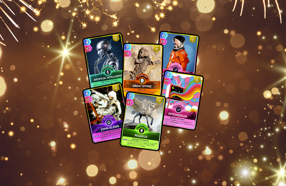 This week’s League Spotlight includes the chance of 1 of 6 fantastic featured Limited Legendary cards, including the sci-fi dream Artificial Intelligence, the winged horse Pegasus, and not-so-cheerful The Great Dying. Which one are you hoping for?!