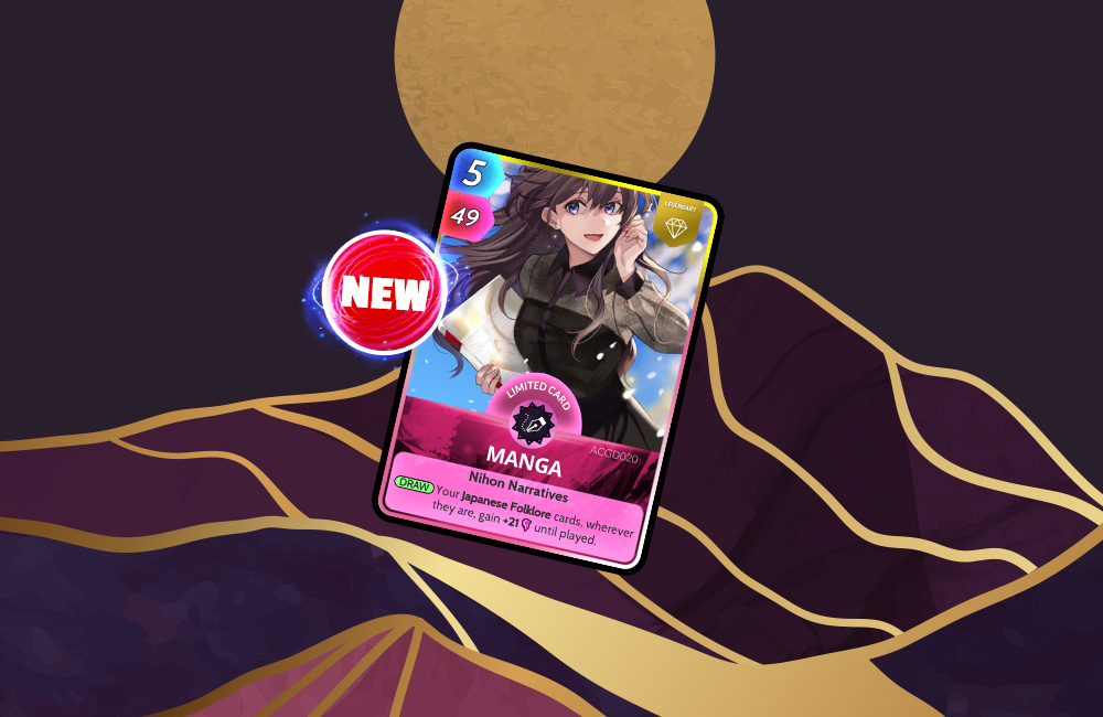 Finally, at 17:00 UTC, there’s an iconic Gorgeous Graphic Design card making a splash (page) in the Arts Album pack. If you’re feeling Kawaii, it might be because you’ve spotted some Manga and you can’t wait to get your hands on it! When drawn, give your Japanese Folklore cards +21 Power until played. Whether you prefer Shonen or Shojo, this Manga card is for you!