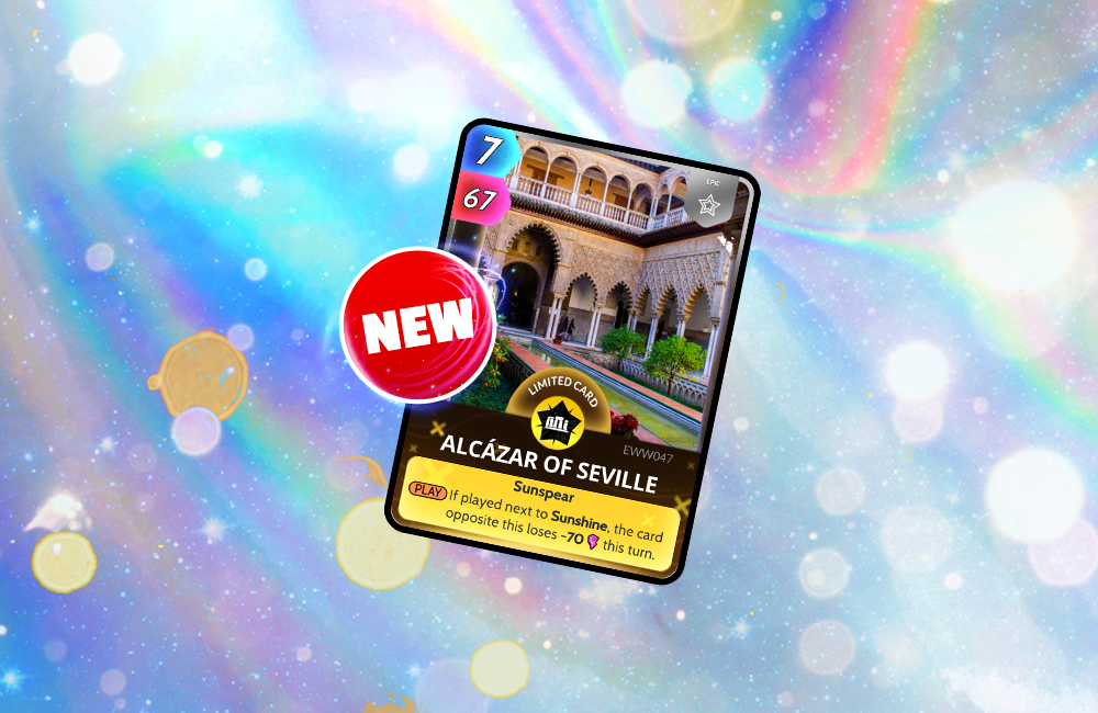 In today’s Epic Monday pack, travel to the sunny water gardens of Dorne, we mean, Alcázar of Seville. This beautiful palace in sun-kissed Spain will give the opposite card -70 Power when played next to Sunshine.
