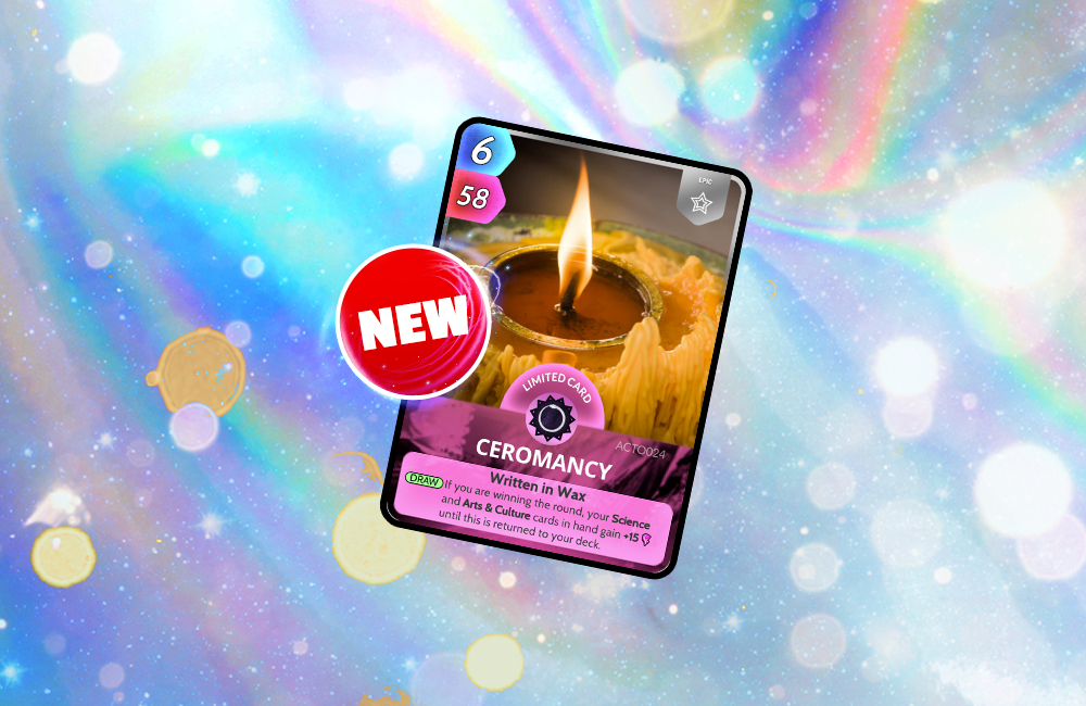 Have some candles ready for today’s Epic Monday because we’re learning the art of Ceromancy! This wax-reading form of divination will, when drawn, if you are winning the round, give your Science and Arts & Culture cards in hand +15 Power until returned to your deck.