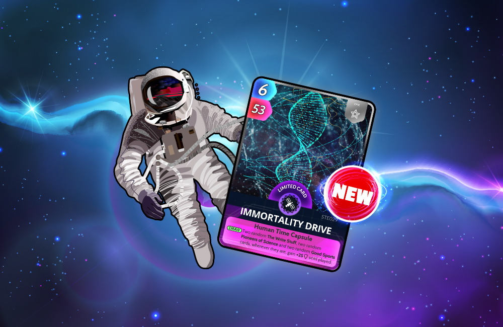 The Great Beyond Space Album pack features a brand new card that’ll come in handy if ever all of humanity gets wiped out - it’s the Immortality Drive! Kept on the International Space Station, this drive contains the digitised DNA of some amazing humans and if we ever need to repopulate, they’ll all look super cute and be incredibly smart and strong (supposedly)! When drawn, give 2 random The Write Stuff cards, 2 random Pioneers of Science cards and 2 random Good Sports cards +25 Power until played.