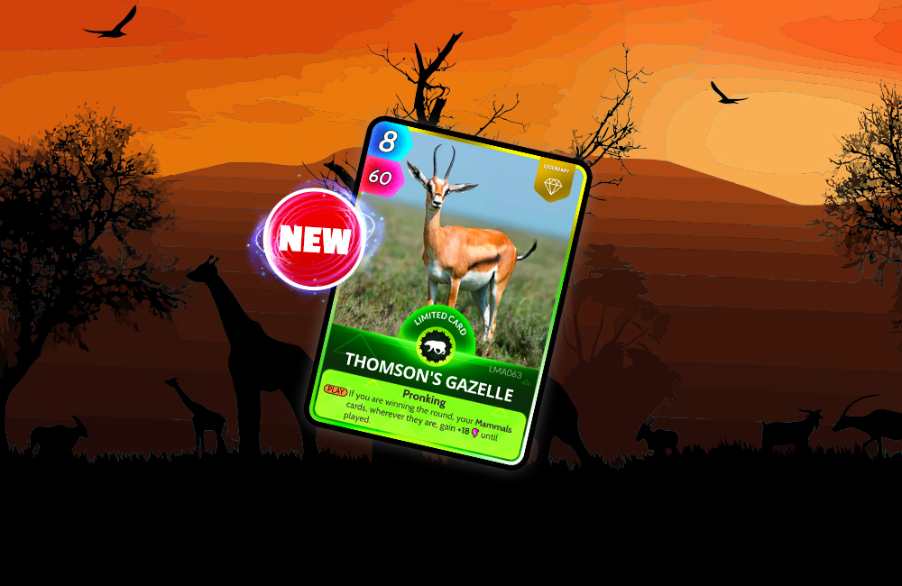 Finally, at 17:00 UTC, the Life on Land pack gallops into the store with a brand new card - the Thomson’s Gazelle. This agile and nimble card will add a spring to your deck’s step as, if played when you’re winning, it’ll give all of your Mammals cards +18 Power until played.