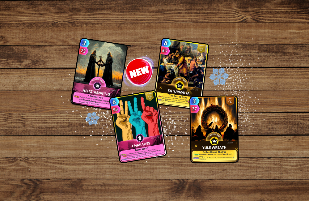 Pull a cracker and pop that paper hat on because the Christmas Party pack is here! Celebrate with cards from The Roman Empire, Norse Mythology, Vicious Vikings and Playtime.
