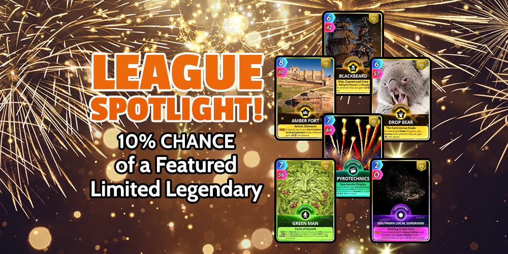 Light up with the Spotlight pack (and its 3 for 2 sibling) for a chance of picking up 1 of 6 Featured Limited Legendaries, including Drop Bear, Pyrotechnics and Blackbeard.