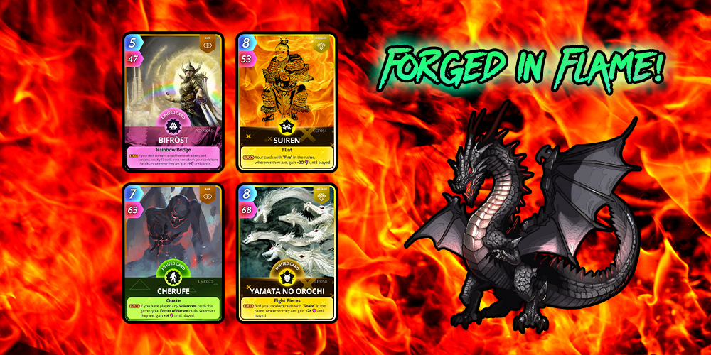 Find some of the hottest stories in mythology with the Forged in Flame pack, including 4 new cards from Norse Mythology, Japanese Folklore, Mythical Creatures and Chinese Folklore.