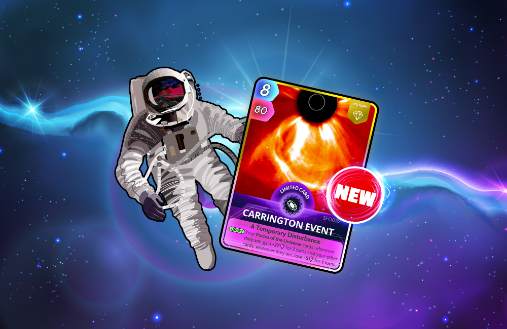 Then from 17:00 UTC, look out for The Great Beyond pack, featuring a new card - the Carrington Event. This geomagnetic disturbance in 1859 was caused by the first and largest solar storm ever recorded! It’ll cause a storm in your deck too as when drawn, your Forces of the Universe cards gain +27 Power for 2 turns and while your other cards lose -5 Power for 2 turns. Chaos everywhere!