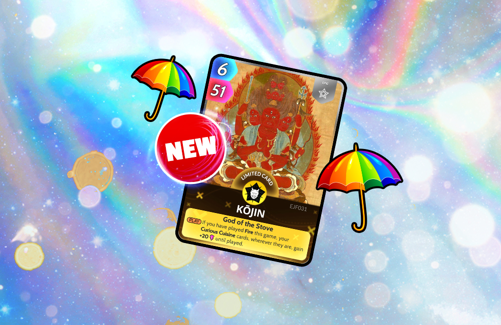 Epic Mondays heats things up at 12:00 UTC with Kōjin, the red-hot God of the stove. This card will come in handy if you’ve already played Fire in a game as it’ll give your Curious Cuisine cards +20 Power until played.