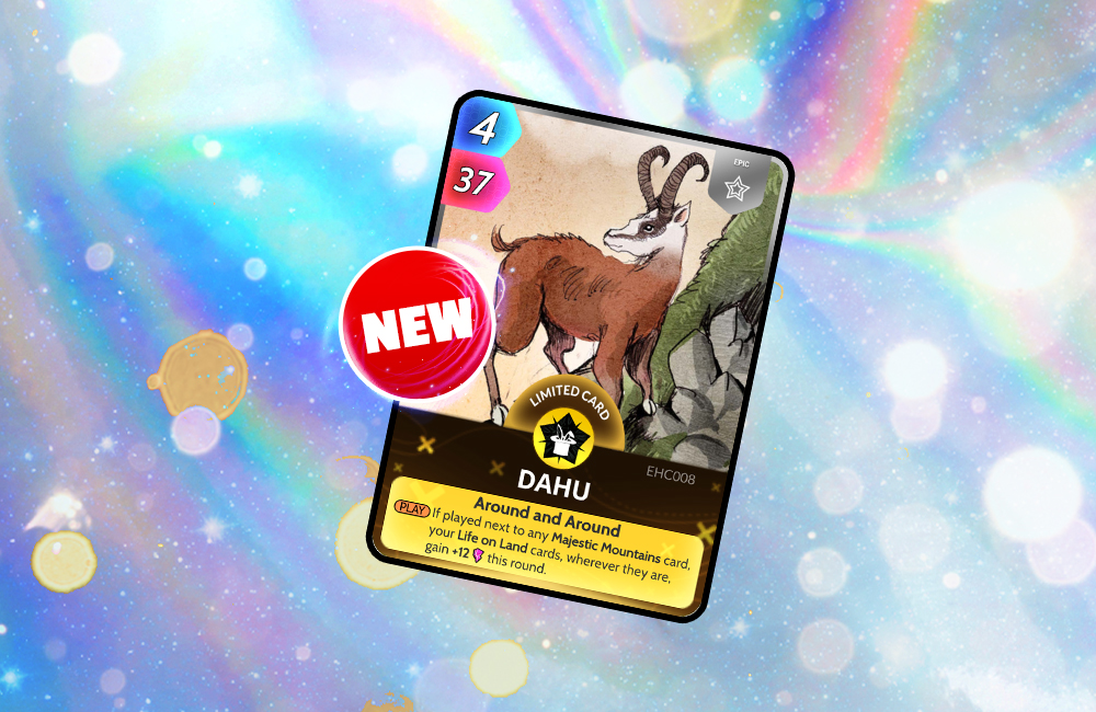 Epic Mondays brings a chance of a strange new Hoaxes and Cons card at 12:00 UTC - the Dahu. This mountain goat cryptid will give your Life on Land cards +12 Power this round but only if placed next to a Majestic Mountains card (which they are known to climb with one leg shorter than the other - bizarre).