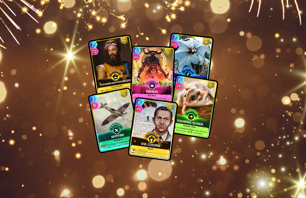 First up, at 12:00 UTC, the League Spotlight lights up the store with a guaranteed Limited a selection of Basics and a chance at a Limited Legendary. This week’s featured Limited Legendaries include cards such as: everybody’s favourite mystery sky pirate, DB Cooper, the rather terrifying Demon, and the super cute Squirrel Glider (look at the size of its eyes!!!).