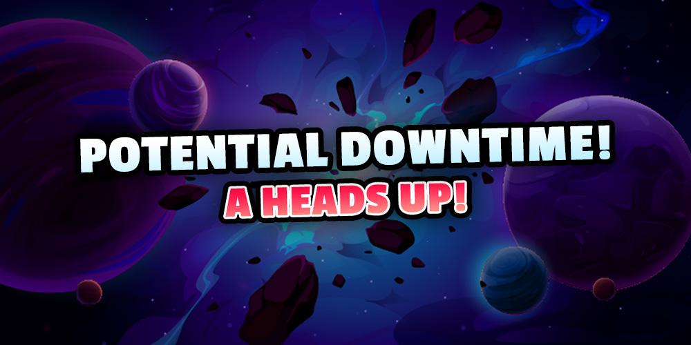 We’re swinging by to give you a heads up that there may be some potential downtime occurring today. We’ll do our absolute best to keep the disruption to a minimum, and we’re very sorry for any inconvenience this might cause.