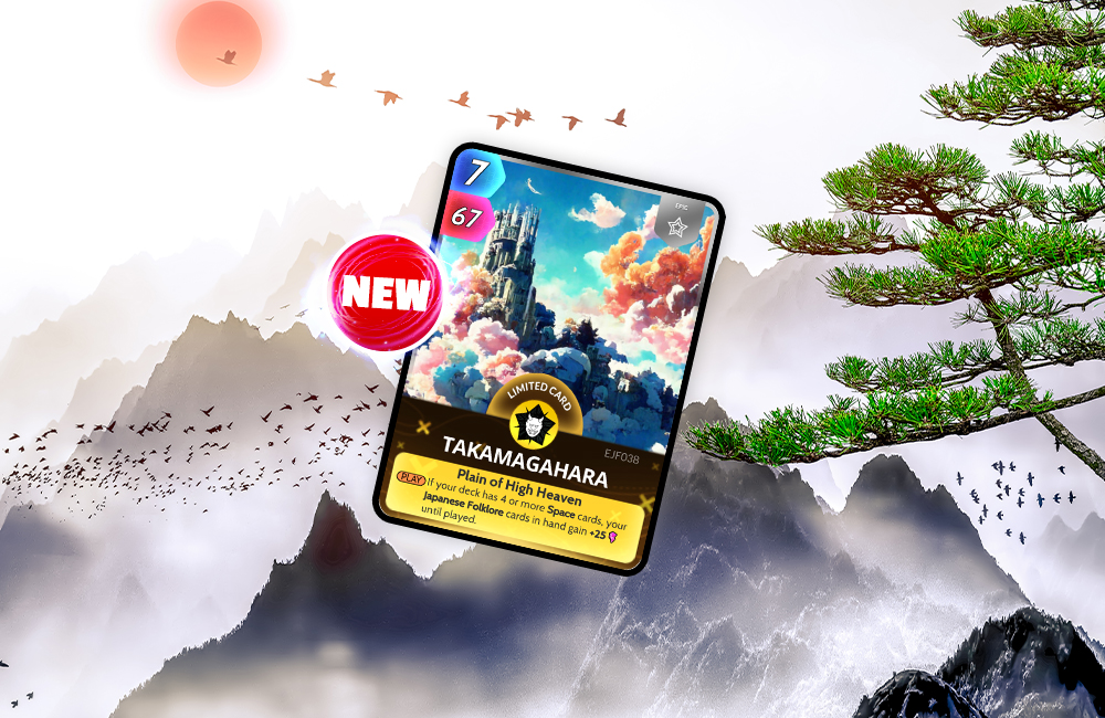 Travel to the realm of the gods of Japanese Folklore with the Gate to Heaven History Album Pack. We hope you enjoy your visit to Takamagahara because, when played, if you have played at least 4 Space cards, give your Japanese Folklore cards in hand +30 Power until played. Space/Shini hybrid deck, anyone?