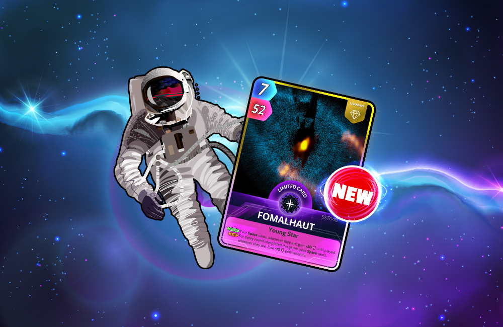 Raise your eyes to the skies because The Great Beyond Space Album pack has one of the brightest stars in the heavens - Fomalhaut. This bright young thing will, when drawn, give your Space cards +30 Power until played. But, when played, for every round completed this game, it’ll give your Space cards -10 Power permanently.