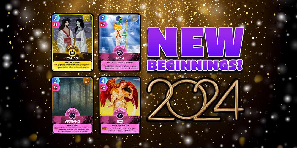 Get ready to start over with the New Beginnings pack. With a chance of finding 4 refreshing new cards from The Occult, Egyptian Mythology, Japanese Folklore and Greek Mythology.