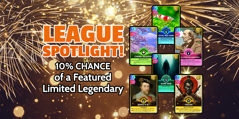 This week’s Spotlight is a hot one with the chance of finding 1 of 6 Featured Limited Legendaries including Dark Web, Hans Christian Anderson and Yasuke! Plus, you can still get it on 3 for 2!