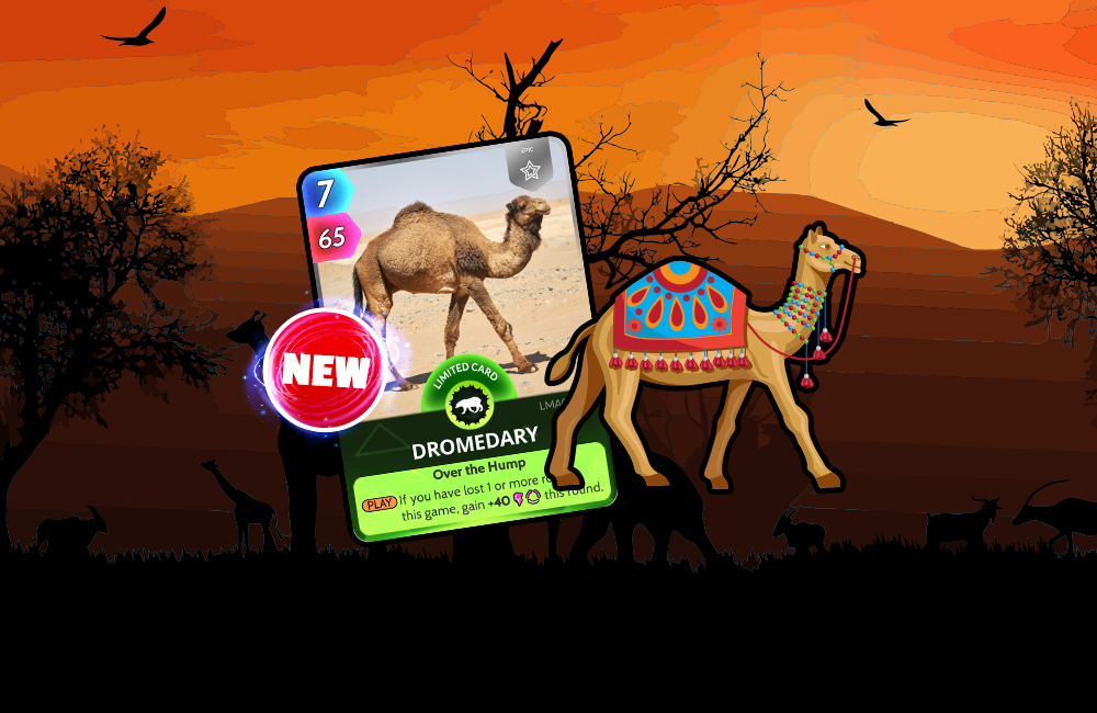 The Call of the Wild Life on Land Album pack is perfectly paired with the Three Kings as iT brings with it a chance of finding a Dromedary! This camel will, when played, if you have lost at least 1 Round this game, gain +40 PPT for the rest of the round.